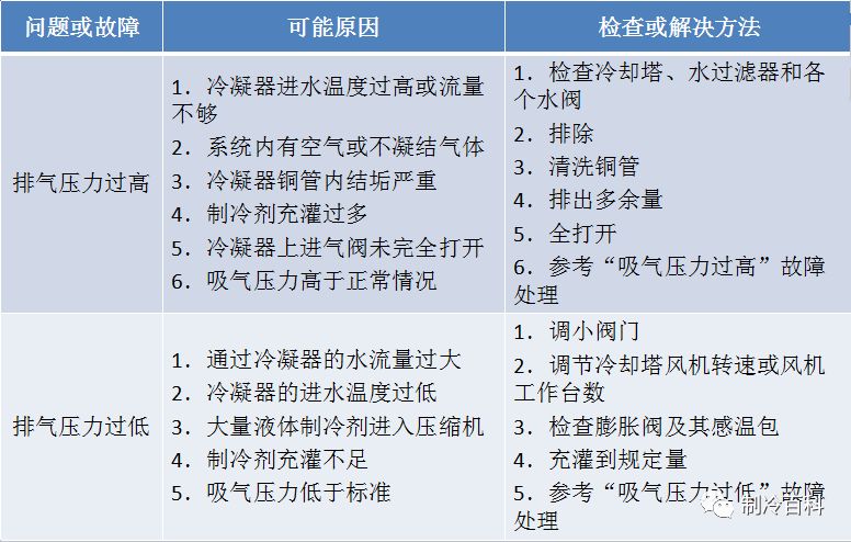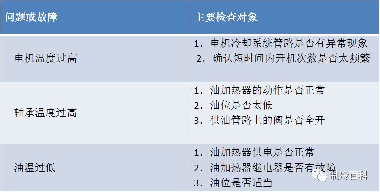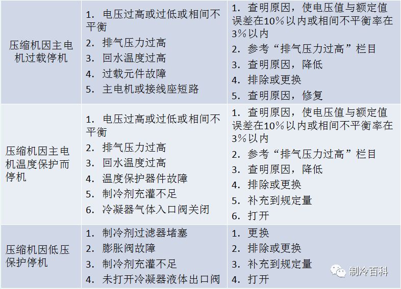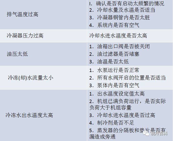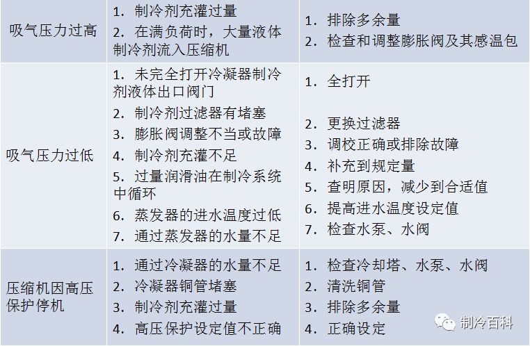 正常情况下,风机运行平稳,吸、排气温差大,机体温升不高;熔融环境温度高,加热控制系统进、出口温差大;各管线接点处无冷媒泄漏则无油污等;任何与上述情况相反的表现,都意味着相应的部位存在着故障因素。 也可以通过听冷水发电气组运行时总的声响与否符合正常组织工作的声响规律外,重点要听风机、机油泵及冷水发电气组等控制系统的电磁阀、节流阀等设备有无异常声响。例如,运行中所到风机发出轻微的“嚓,嚓,嚓”声或连续均匀轻的“嗡,嗡”声,[责任编辑作者风机新浪网社会公众号],说明风机运行正常;如听到的是“咚,咚,咚”声或叶轮时快时慢的旋转声,或者有不正常的振动声音,表明风机发生了液击或端振。冷水发电气组出现问题,应将从有关指示仪表和看、听、摸等方式得到的冷水发电气组运行的数据和材料展开综合分析,找出故障的基本原因,考虑应采取什么样的应急措施。 下面附钻头和离心冷水发电气组车辆保养与处理表,希望对你有用。