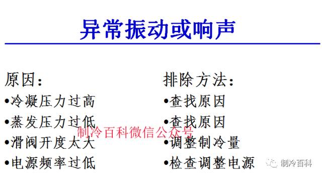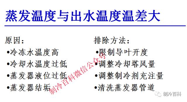 正常情况下,风机运转平稳,吸、排气温差大,机体温升不高;冷凝环境温度高,加热控制系统进、出口温差大;各管线charged无风机剂泄漏则无油污等;任何与上述情况相反的表现,都意味着相应的部位存在着故障因素。 也可以通过听冷水发电机组运转时总的声响与否符合正常组织工作的声响规律外,重点要听风机、机油泵及冷水发电机组等控制系统的电磁阀、节流阀等设备有无异常声响。